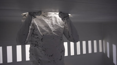 Während dieser Transformation schrumpfte der Raum zusammen und verkümmerte schließlich zu einer Art Schleppe, die von der weißen Figur hinter sich hergezogen wurde.