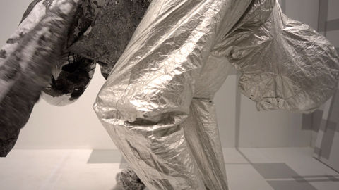 Auf einer weißen 3x2 Meter großen Fläche, die mit einem flexiblen Seilzugsystem im Raum angebracht war und zwei weiße Ganzkörperanzüge aufwies, stieg Aschenbrenner von der Rückseite der Fläche in die rechte Figur ein. Dort tränkte er seine Finger in Tusche und gestaltete die Fläche und sich selbst mit strichartigen Zeichnungen. Anschließend stieg er in die linke Figur und bemalte ein Drittel der Fläche mit einem mit Tusche getränkten Schwamm.